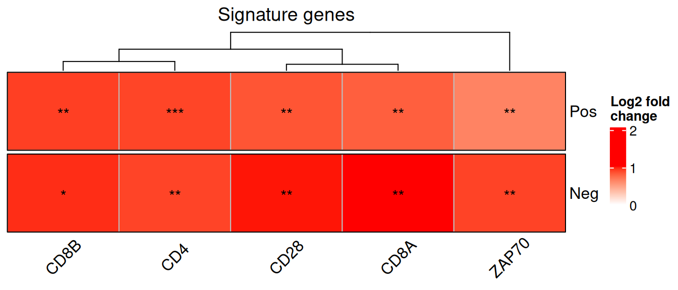- Use log2 fold changes in the heatmap cells